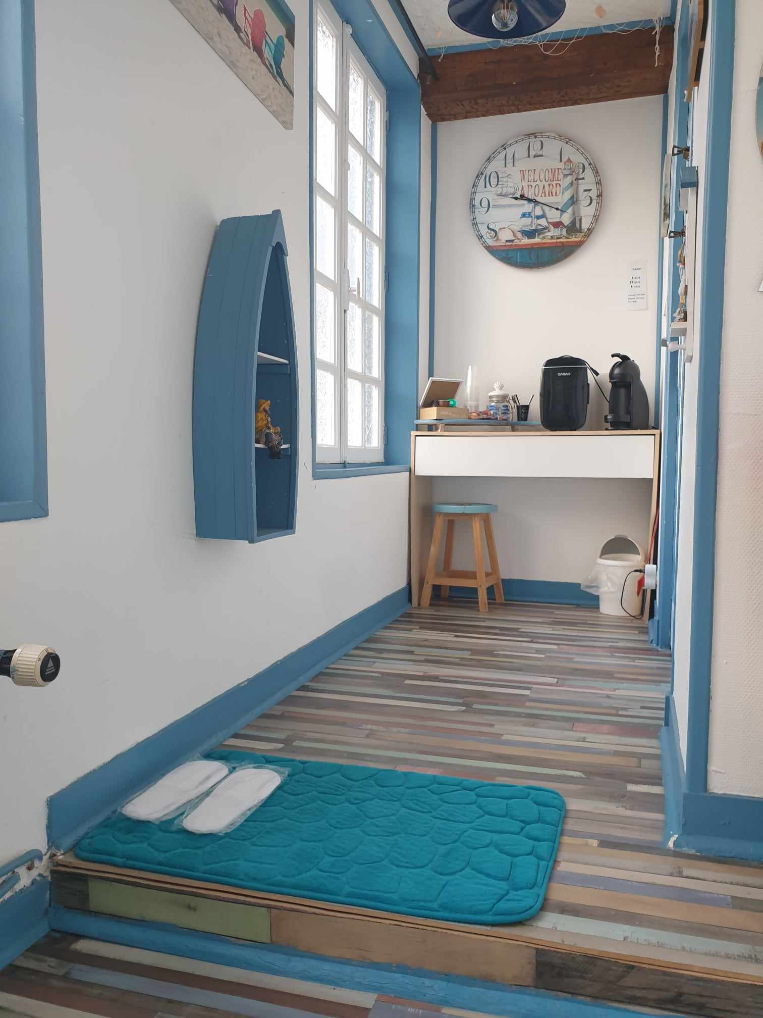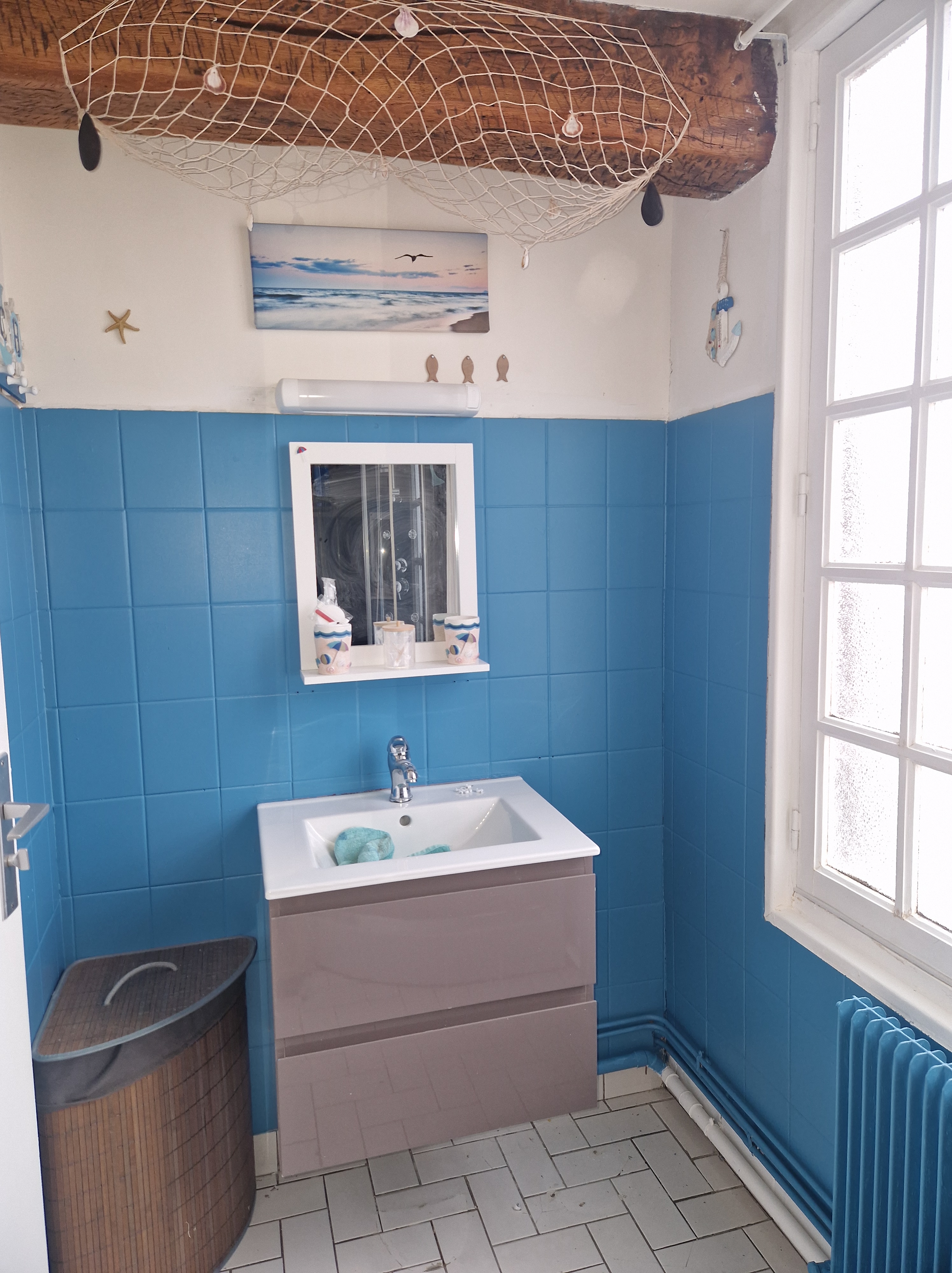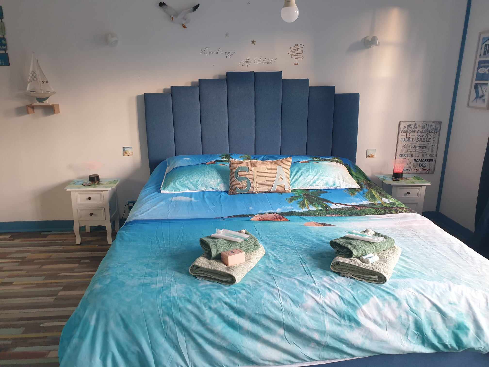 Pour tous ceux qui aiment la mer, Le Mouton Gras se situe à 45 km du Tréport et est proche de la baie de Somme. Nous avons donc voulu vous donner un avant goût de vos visites en bord de côte avec la possibilité de vous reposer dans cette chambre.